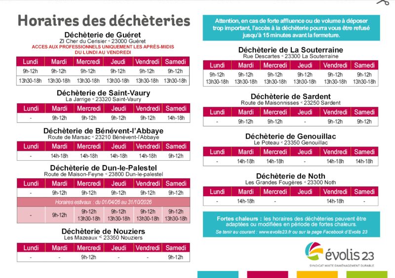 Attention, en cas de forte affluence ou de volume à déposer trop important, l'accès à la déchèterie pourra vous être refusé jusqu'à 15 minutes avant la fermeture, pensez à prendre vos précautions.
